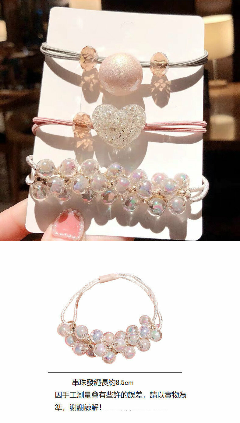 熱賣三件套 頭繩手鍊兩用頭飾韓版可愛髮圈皮筋簡約珍珠發繩皮筋