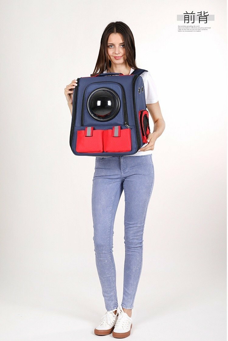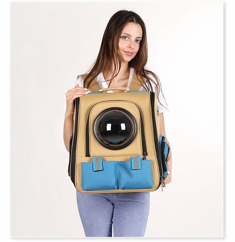 爆款三面透氣撞色雙肩寵物袋(啡+綠)