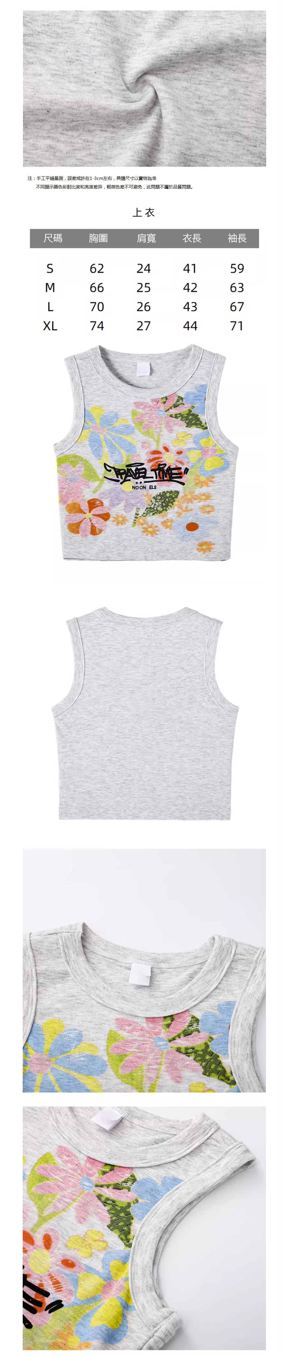 新款紮染花朵吊帶背心(淺灰色)(S碼-XL碼)(下單後聯絡客服確認發貨尺)