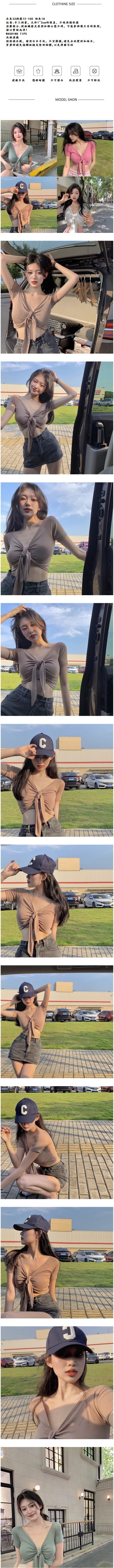 新款緊身辣妹甜酷純欲風綁帶不規則短袖T恤(白色)(尺碼:均碼)