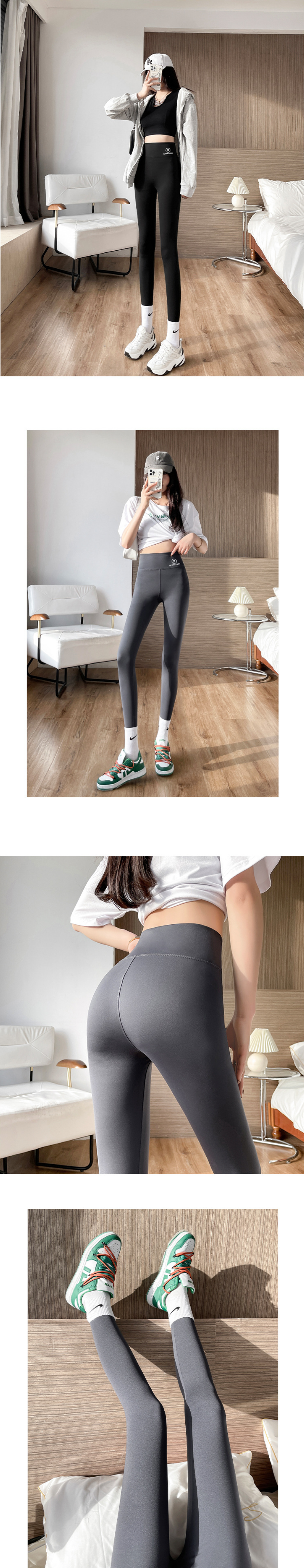 新款緊身高腰薄款打底長褲(咖色)(尺碼:M-XL)(下單後聯絡客服確認發貨尺碼)