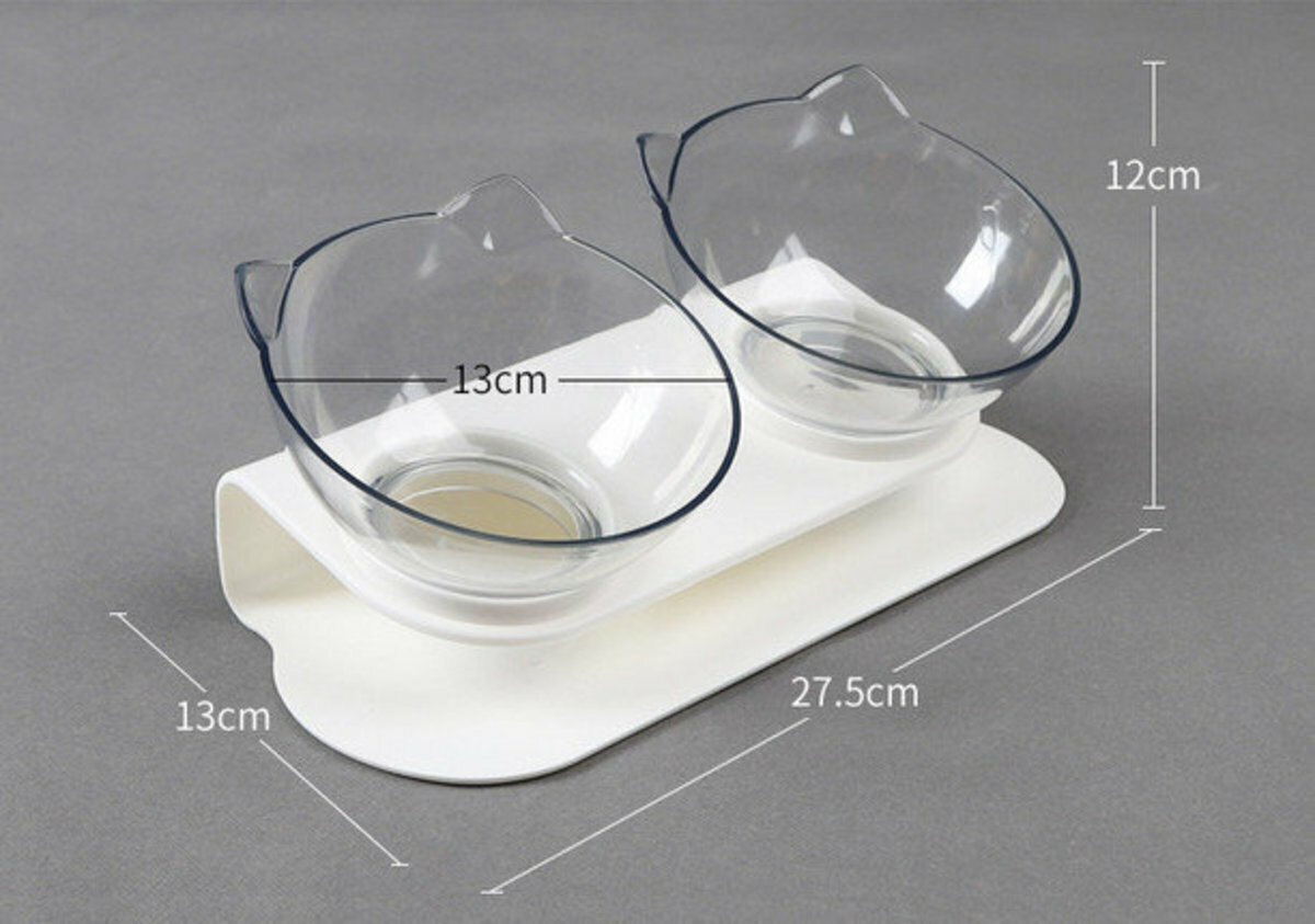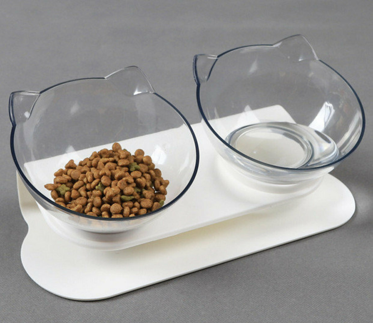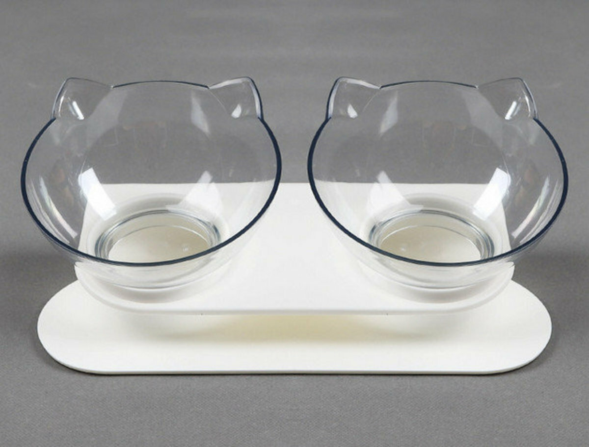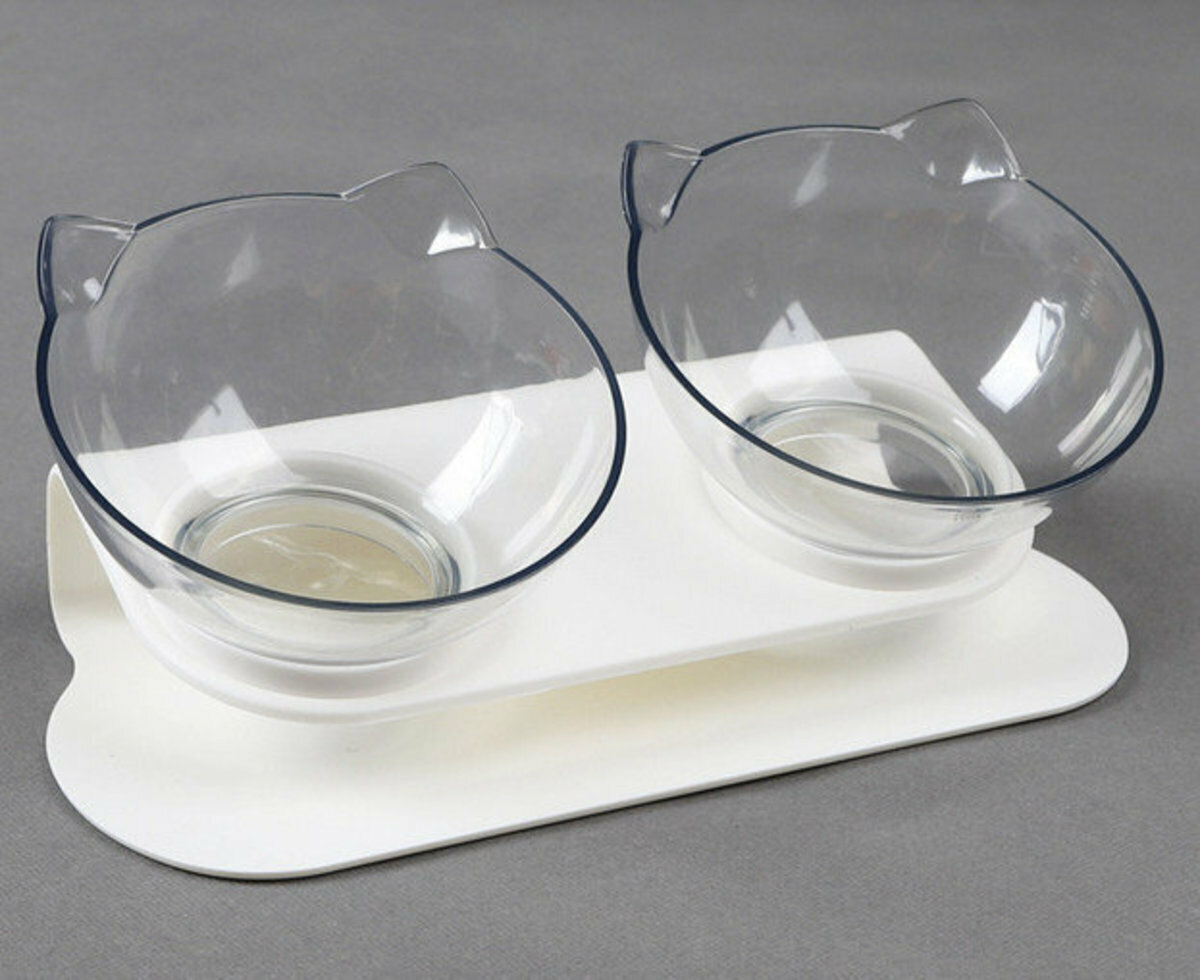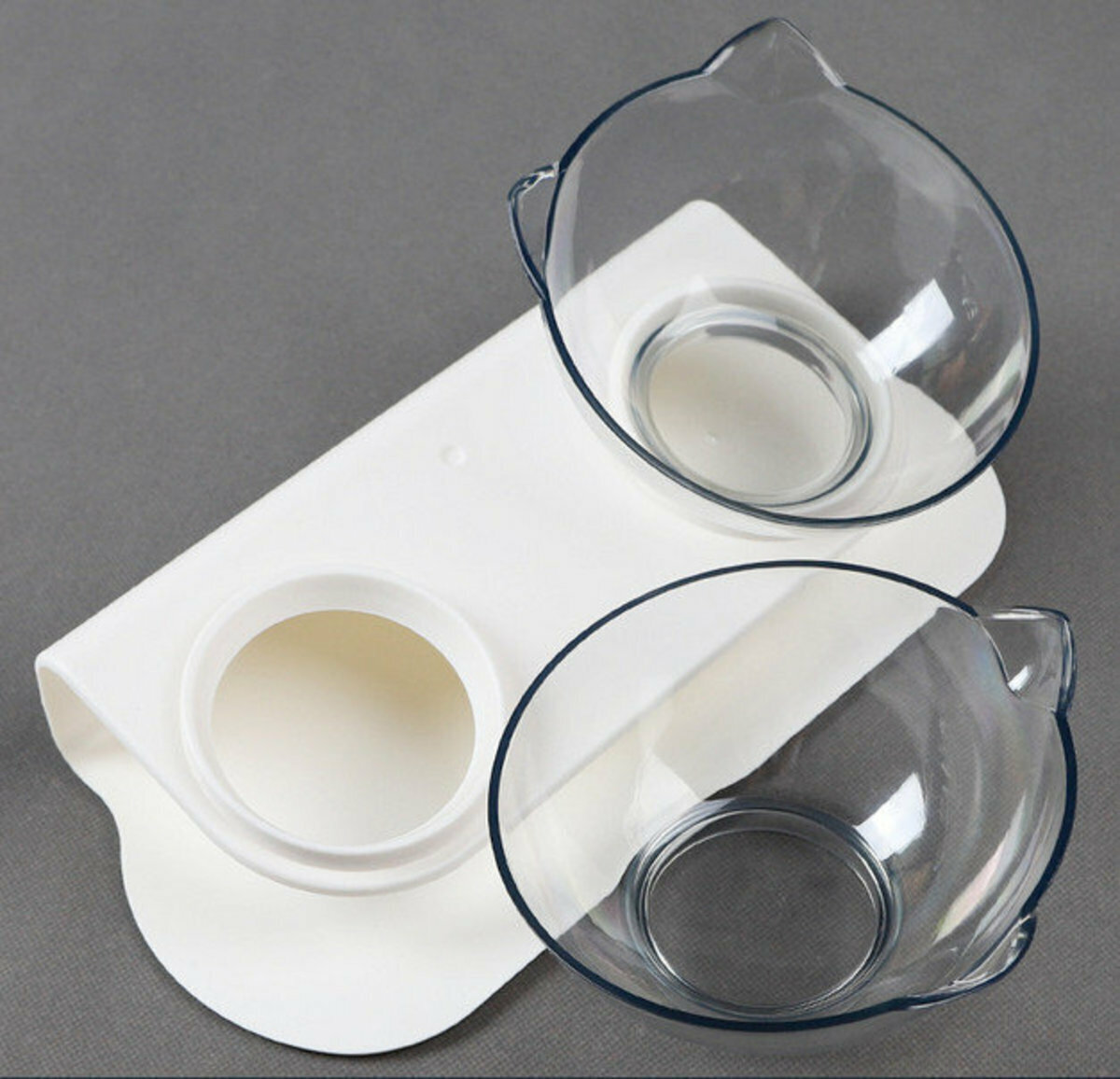 爆款傾斜透明貓耳朵雙碗 二合一飲水狗貓碗盆