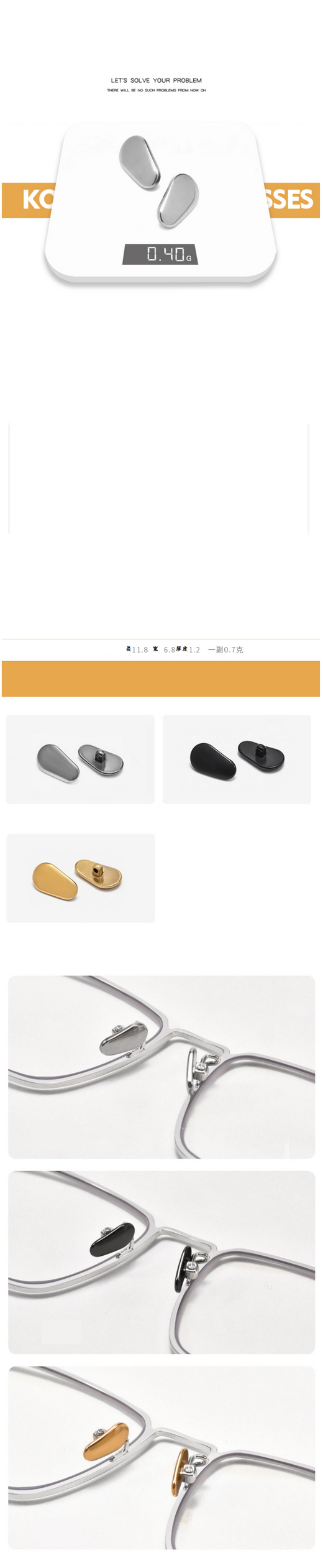 熱推鈦金屬眼鏡鼻托鼻墊(規格:金色1對)(螺絲款)
