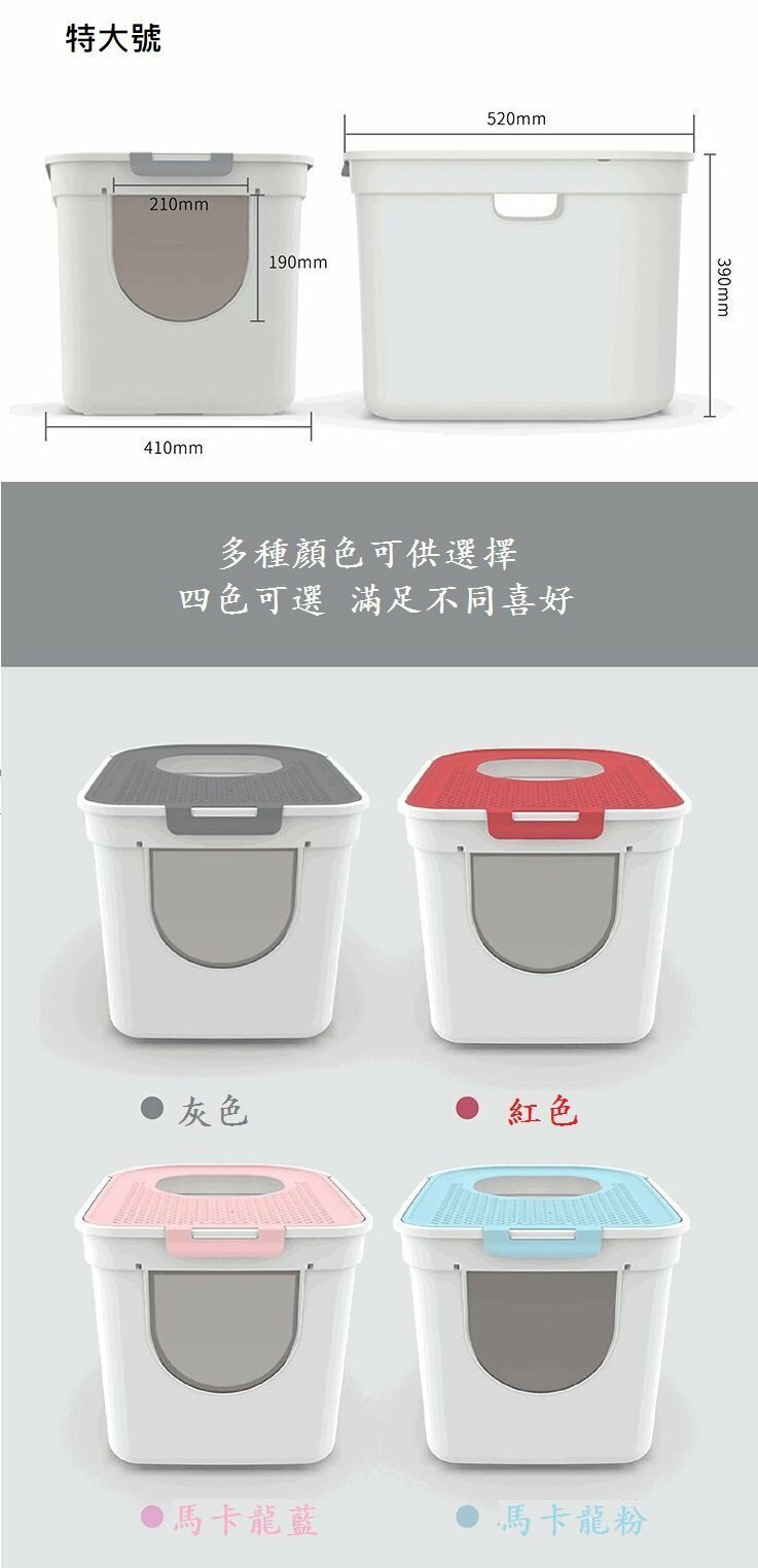 熱推頂入式全封閉除臭貓砂盆(灰色)特大號