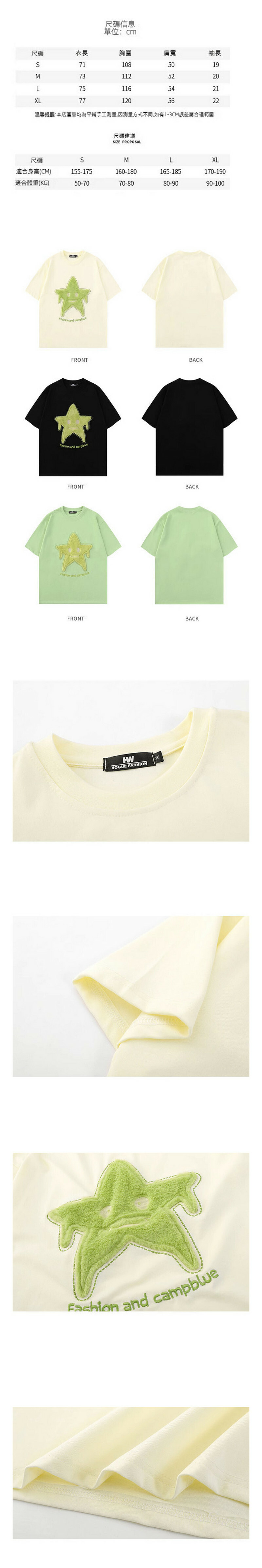 新款毛巾繡星星短袖T卹(綠色)【S-XL碼】【下單後聯絡客服確認發貨尺碼】