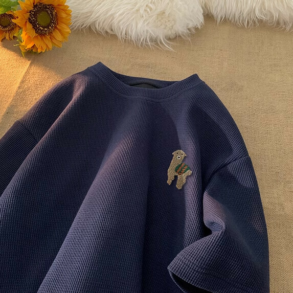 熱賣毛巾袖短袖T恤男夏(藏青色【M_5XL碼】(下單後聯繫客服確認發貨尺碼)