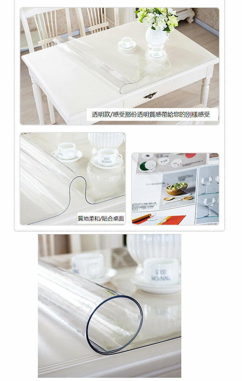 熱推[透明/厚1.5mm] (尺寸:80*120cm) PVC環保透明塑膠軟玻璃桌布 桌墊