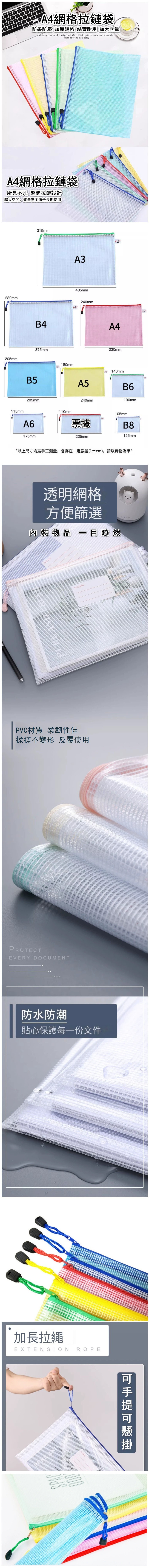 爆款透明pvc網格拉鏈檔袋 資料袋(網格A4 33.5*24CM)(黃色)
