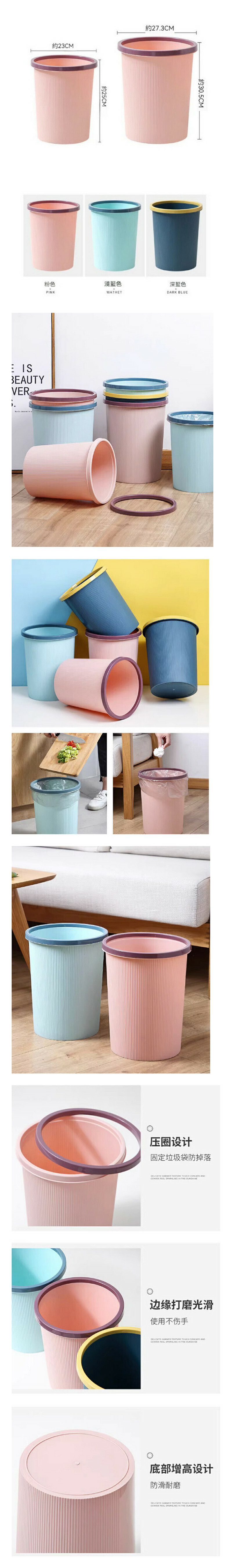 熱推帶壓圈垃圾桶(小號深藍色)(上口徑23CM,高25CM)