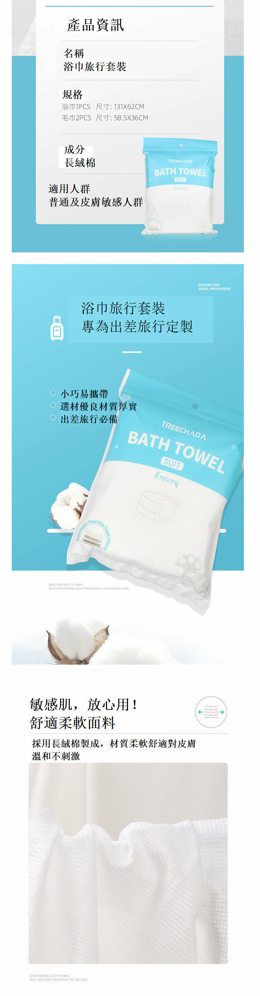 新款旅行必備一次性浴巾 加厚純棉便攜即棄毛巾套裝【規格浴巾1PCS(131*62cm)+毛巾2PCS(58.5*36cm)】