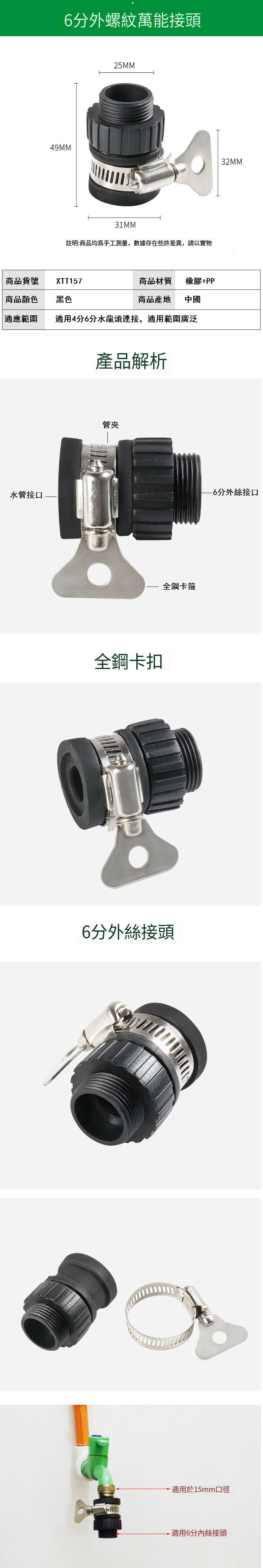 熱推萬能接頭水龍頭通用轉換介面配件【顏色黑色(規格 6分外螺紋水龍頭)】