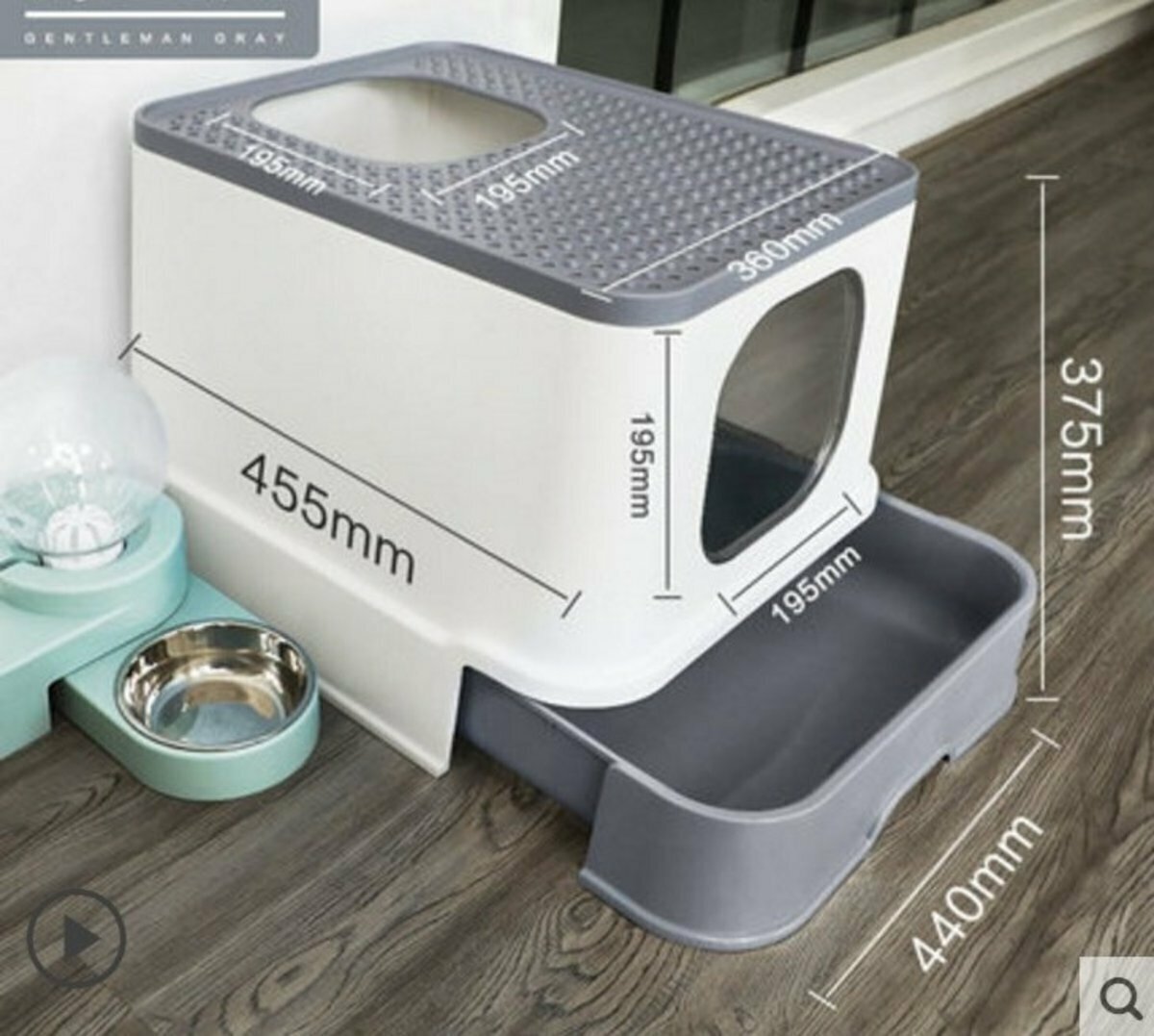 熱賣直立式貓砂盆,抽屜式底盤【紳士灰色】