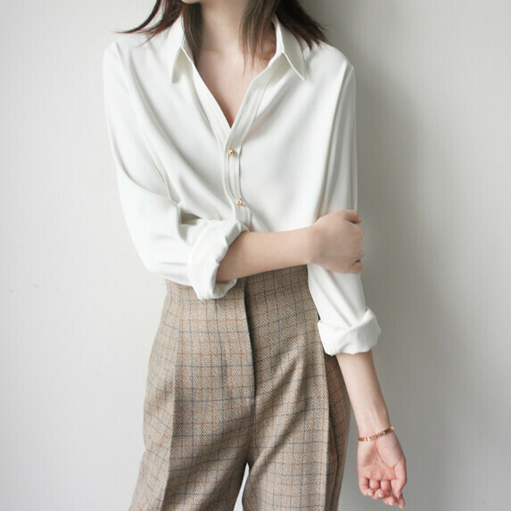 熱賣V領襯衫女長袖秋冬(白色【S_M碼】(下單後聯繫客服確認發貨尺碼)】