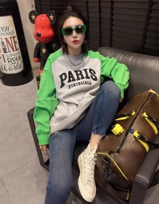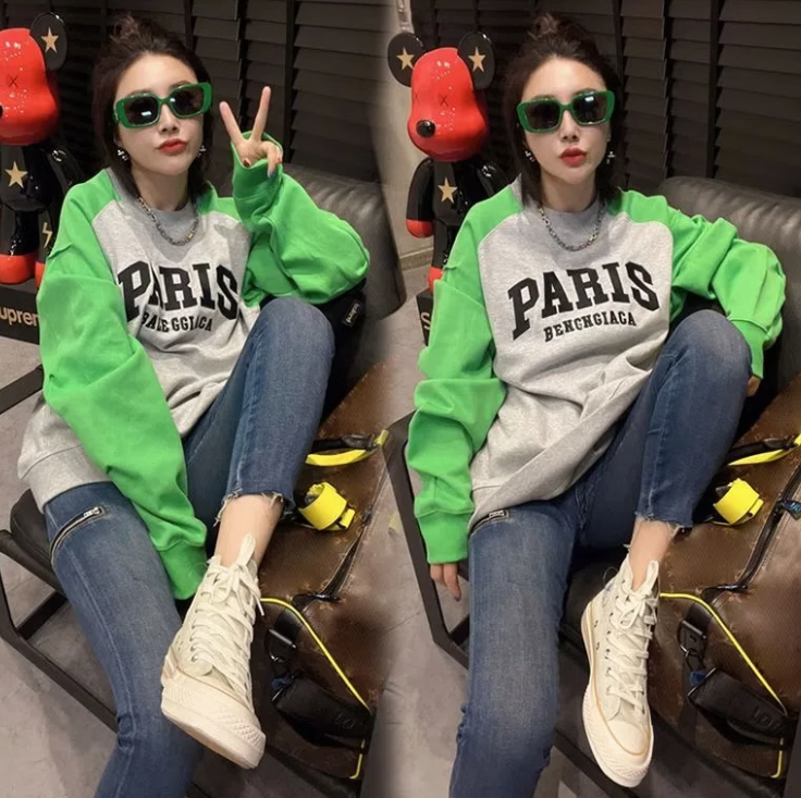 加絨拼色圓領衛衣