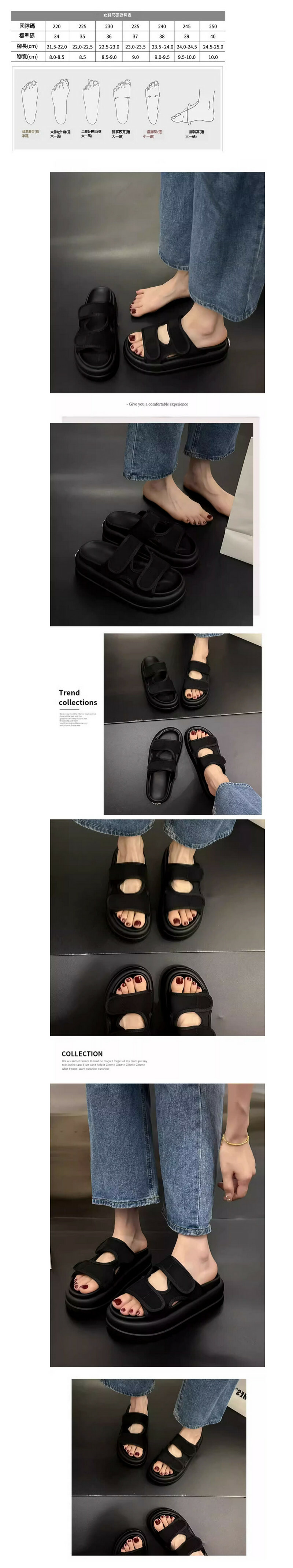新款百搭魔術貼沙灘鞋(黑色/35-40碼)(下單後聯絡客服確認發貨尺碼)
