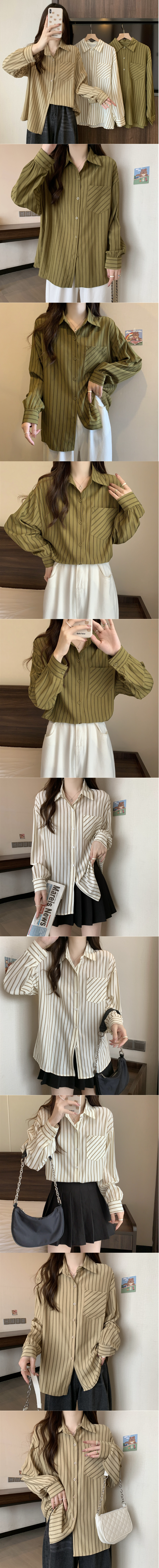 爆款豎條紋長袖襯衫(米白色 尺碼:S-3XL)(下單後請聯絡客服確認發貨尺碼)