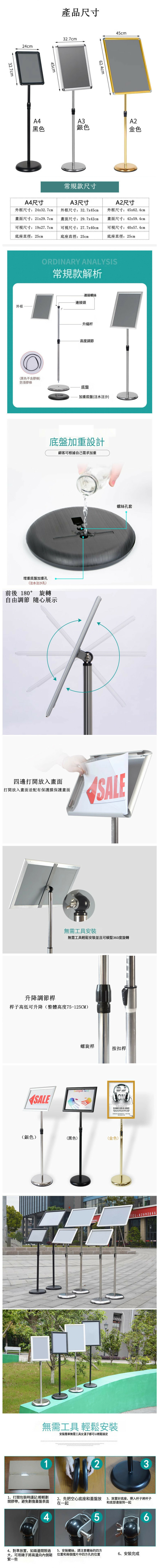 立式指示牌-- 酒店導向牌 落地展示牌 廣告牌【A2金色 直角 螺旋款】1件