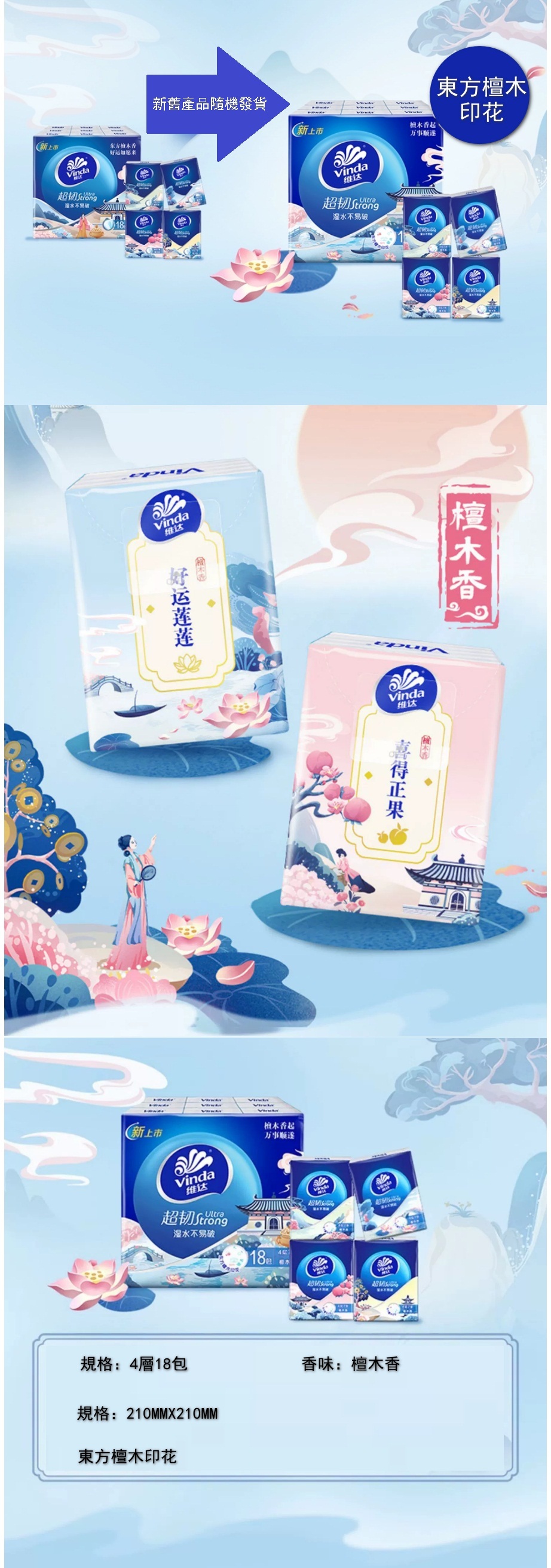 維達【檀木花香 新舊產品隨機發貨】4層18包,面巾紙手帕紙4層可擕式隨身裝小包迷你紙巾