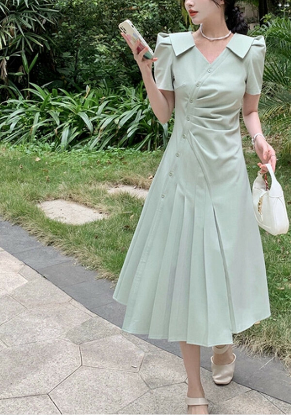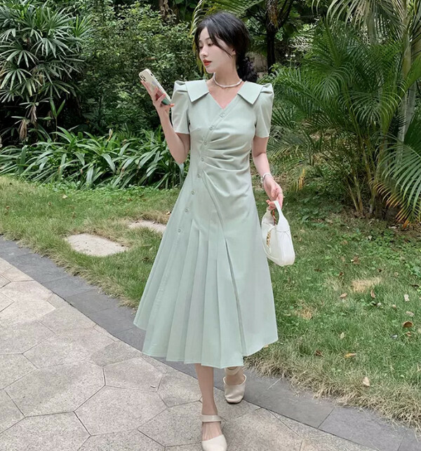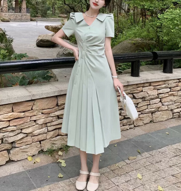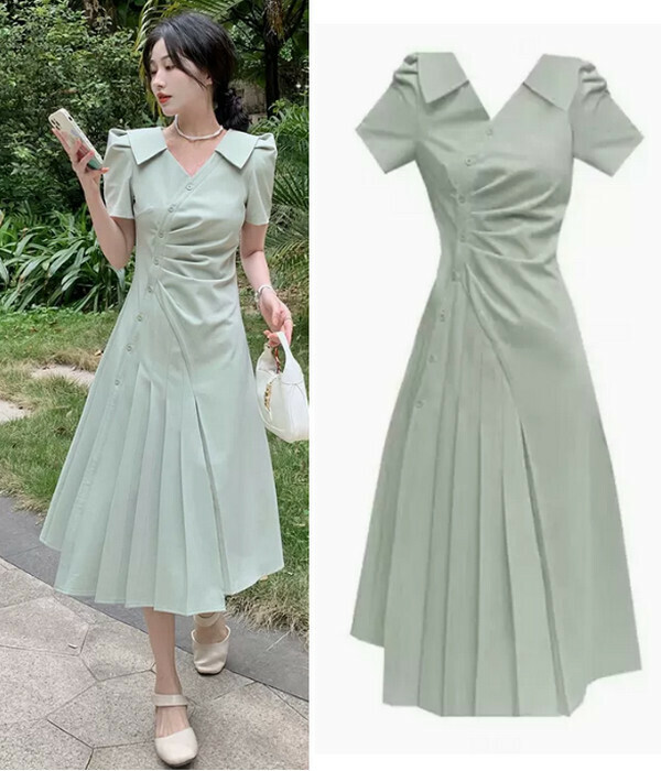 新款收腰顯瘦不規則別致連衣裙#單件(綠色)(M-4XL碼) (下單後聯系客服確認尺碼)