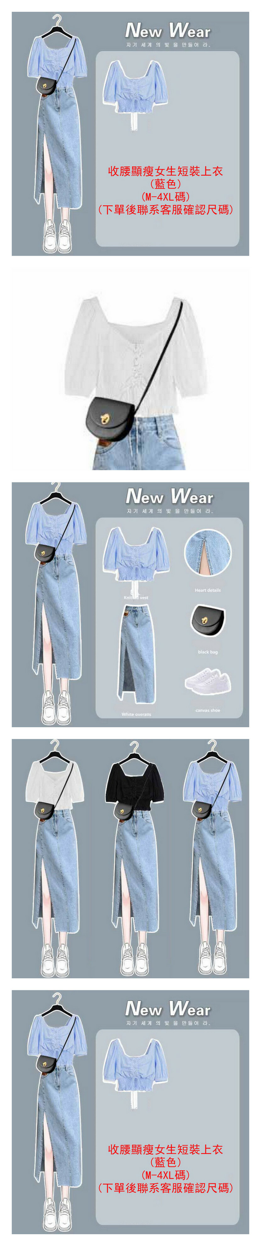 熱賣收腰顯瘦女生短裝上衣(藍色)(M-4XL碼) (下單後聯系客服確認尺碼) #F105034151