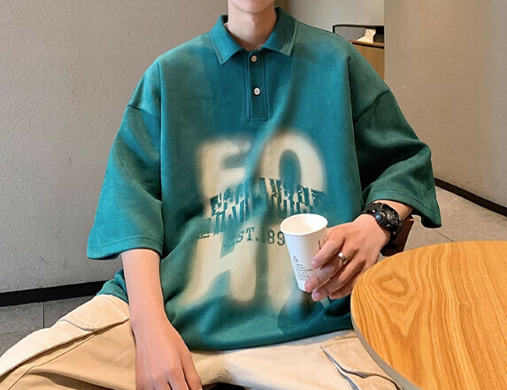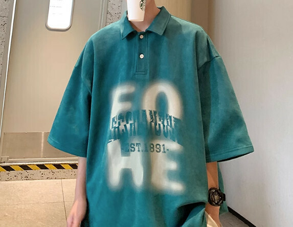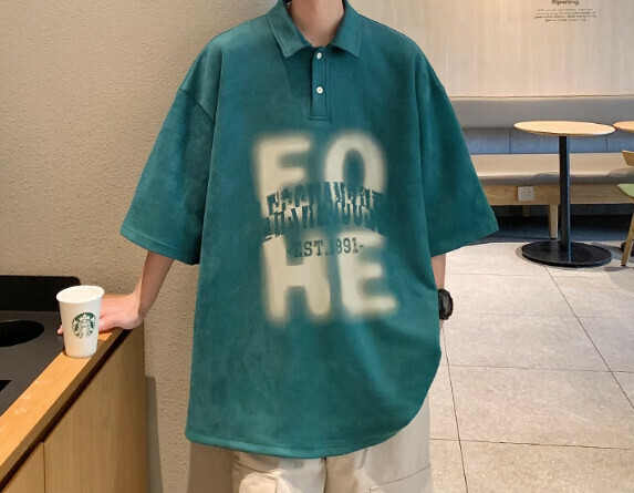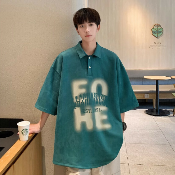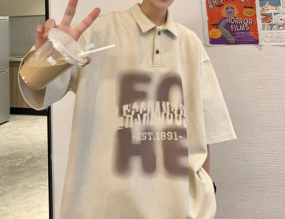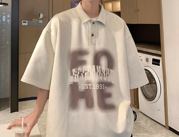 熱推水印翻領短袖T恤男夏(杏色【M_5XL碼】(下單後聯繫客服確認發貨尺碼)
