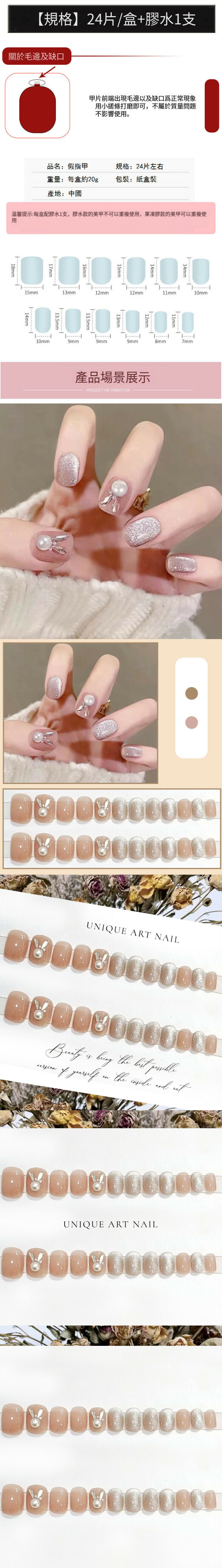 新款穿戴甲美甲甲片【晶石珍珠兔(果凍膠款)】