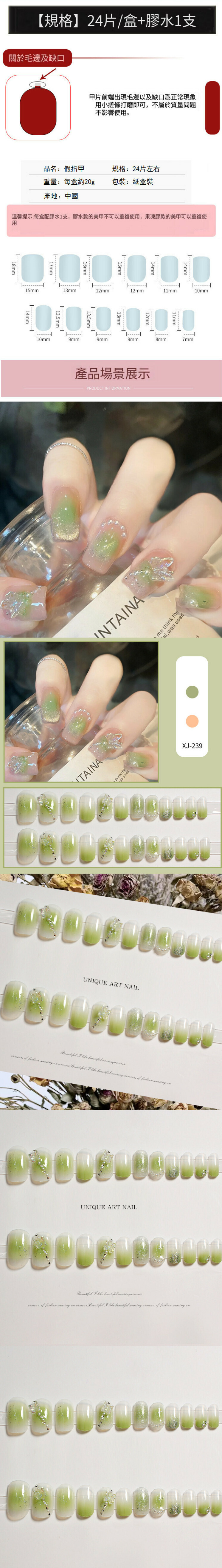 新款穿戴甲美甲甲片【貓眼極光綠蝴蝶(果凍膠款)】