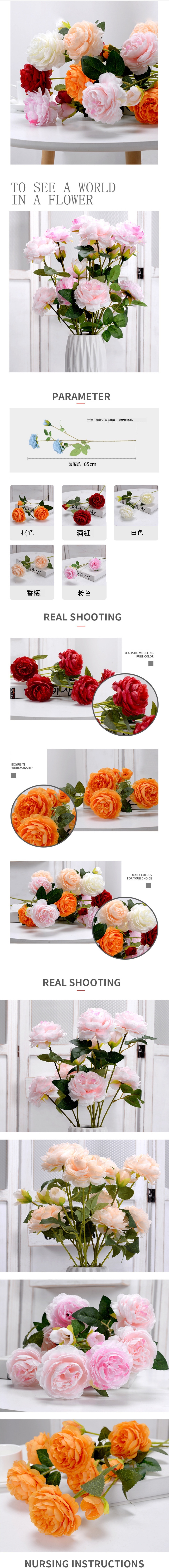 新款西洋牡丹花 仿真花 假花 (單支 大紅色)