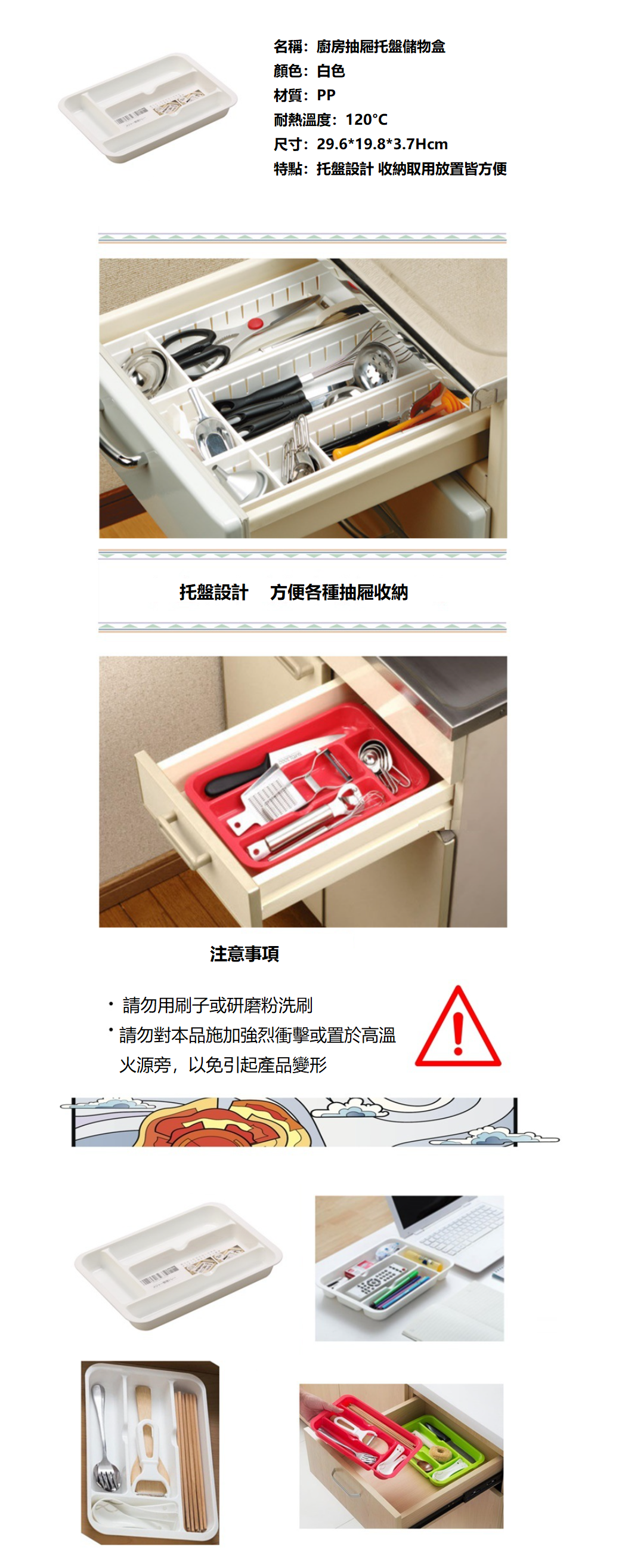 熱賣白色廚房餐具整理托盤 筷子匙刀分類收納盒【白色】
