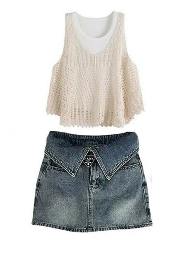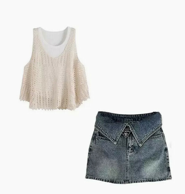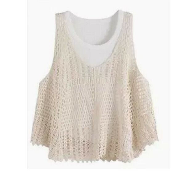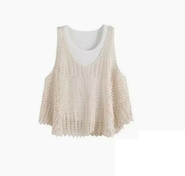 激抵白色背心+杏色鏤空針織罩衫馬甲(M-4XL碼) (下單後聯系客服確認尺碼)