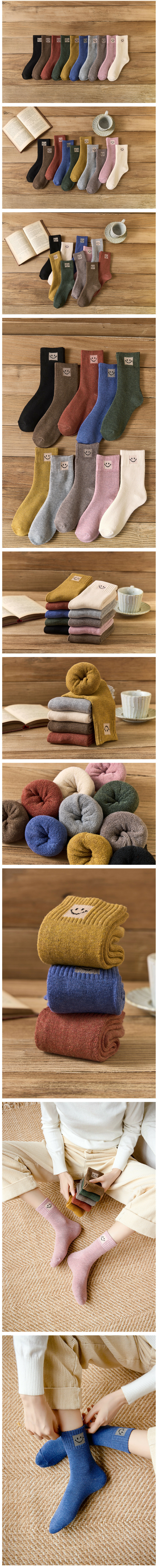 熱賣冬季卡通笑臉純色女中筒襪 加厚毛圈襪(均碼)