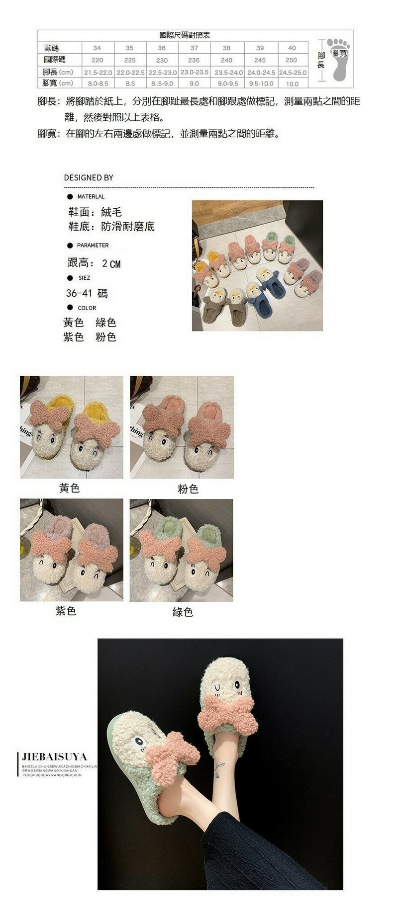 爆款冬季搞怪毛絨卡通女拖鞋(綠色 40碼)