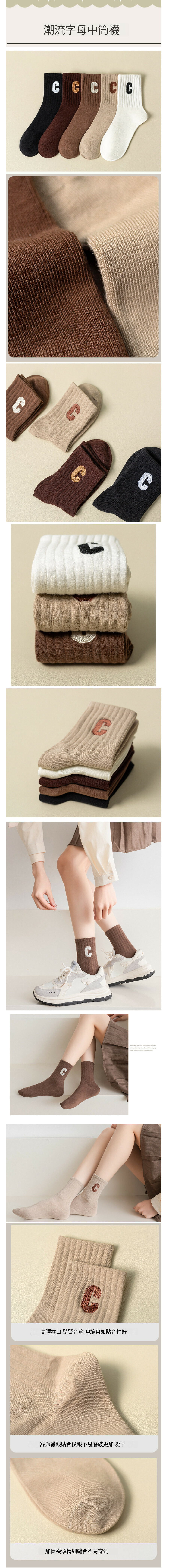 熱推女款字母中筒純色棉襪子(黑色)