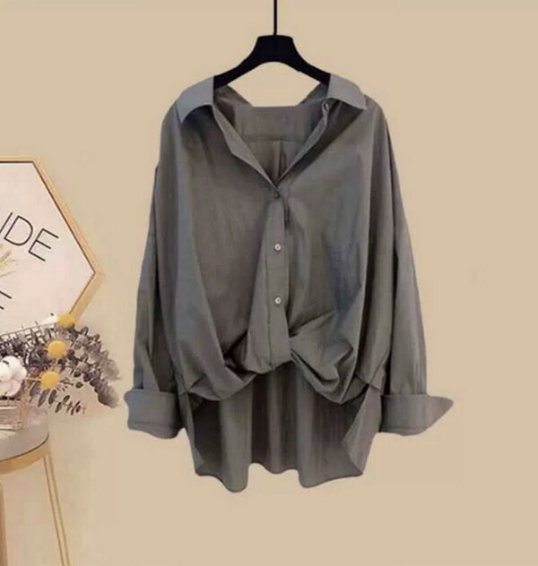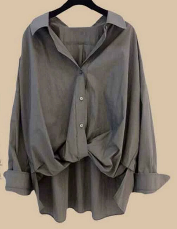 熱推女裝-時尚減齡遮肉顯瘦襯衫#單件(灰色)(M-4XL碼) (下單後聯系客服確認尺碼)
