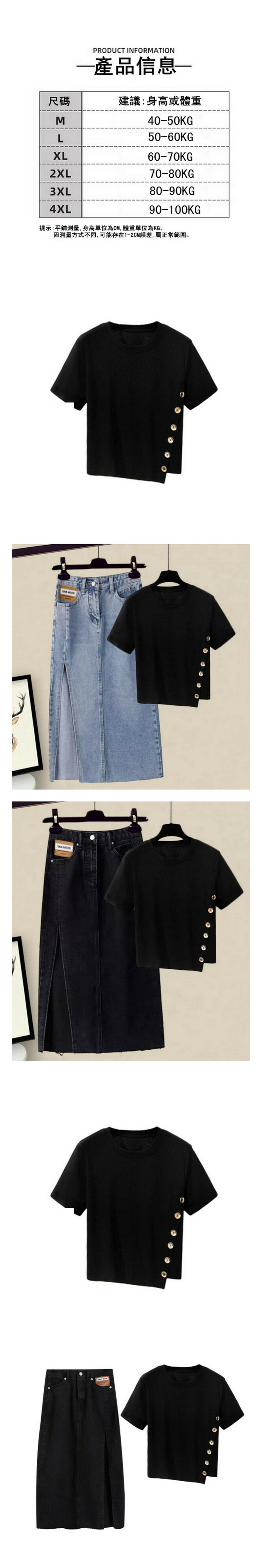 熱賣女裝-寬松顯瘦開叉短袖#單件(黑色)(M-4XL碼) (下單後聯系客服確認尺碼) #
