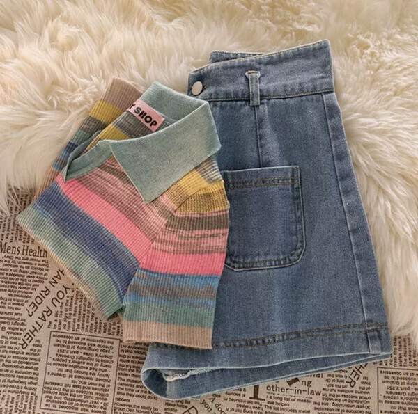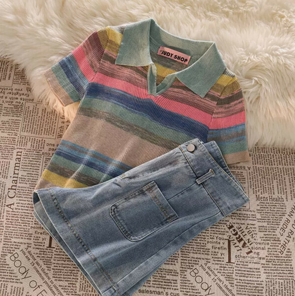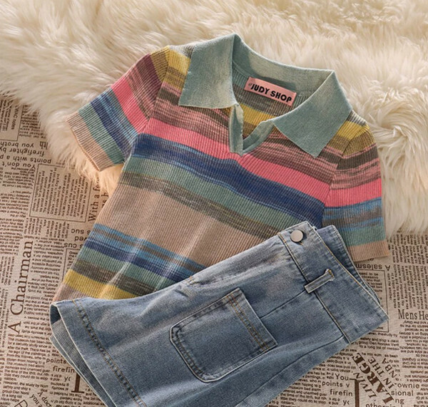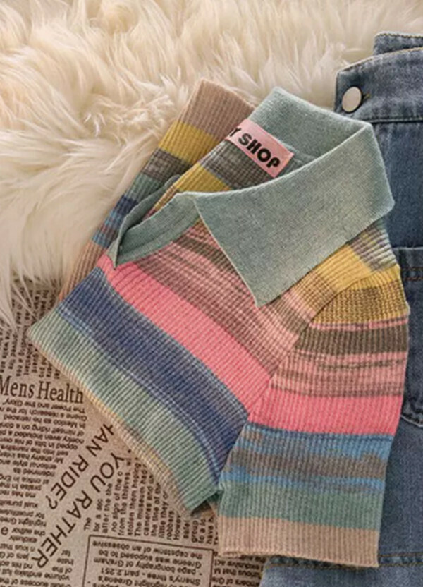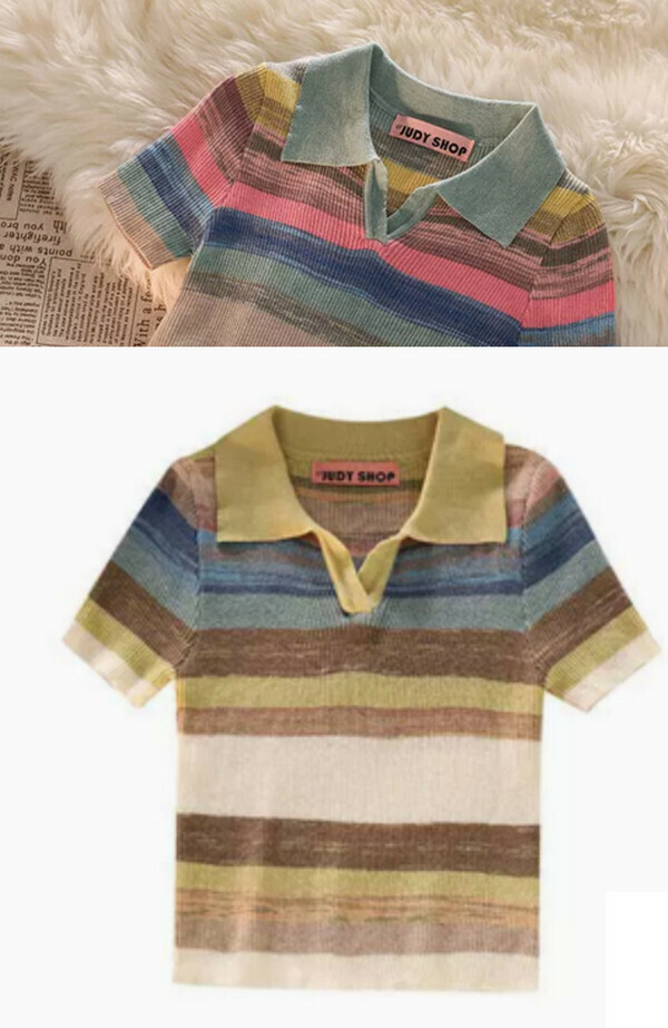 熱賣女裝-條紋polo領t恤上衣#單件(藍色)(M-4XL碼) (下單後聯系客服確認尺碼)