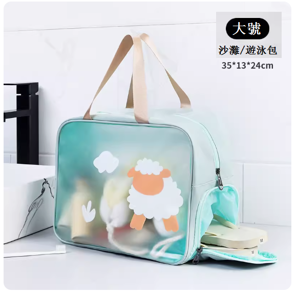 女便攜化妝包(藍綠色雲上綿羊大號)