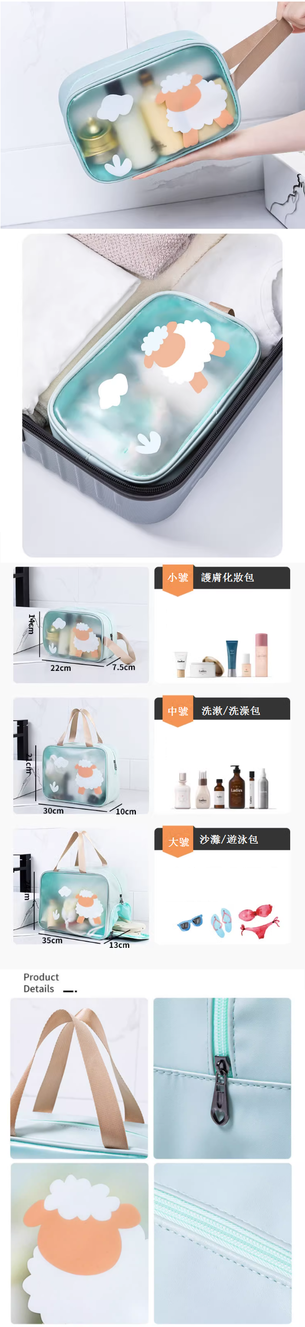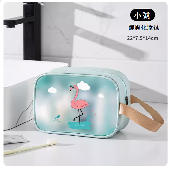 女便攜化妝包(藍綠色火烈鳥小號)
