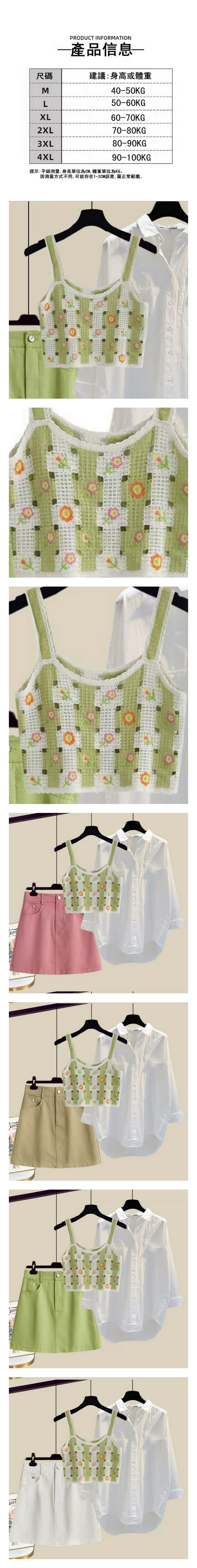 熱推女裝-復古針織吊帶背心#單件(白綠)(M-4XL碼) (下單後聯系客服確認尺碼)