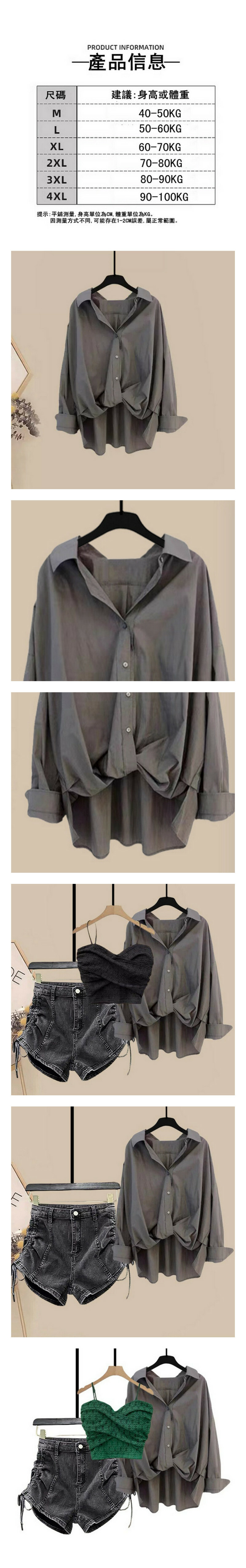 熱推遮肉顯瘦女裝襯衫#單件(灰色)(M-4XL碼) (下單後聯系客服確認尺碼)
