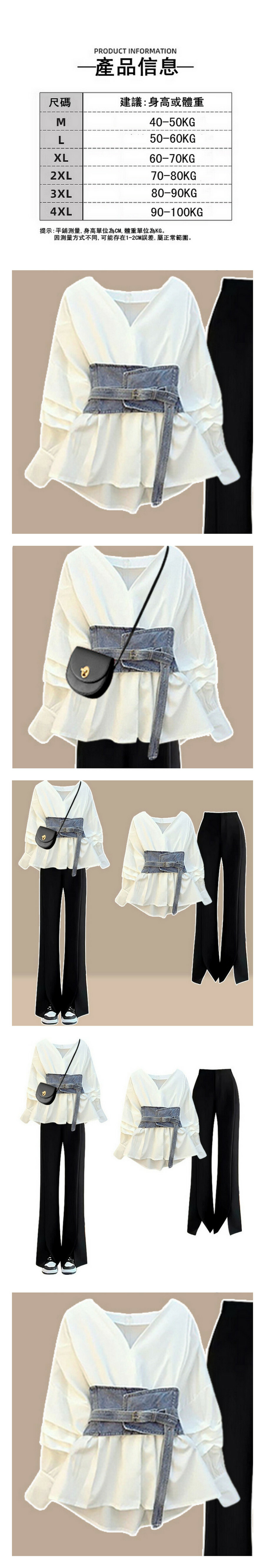 熱賣女裝襯衫+束腰(白色)(M-4XL碼) (下單後聯系客服確認尺碼)