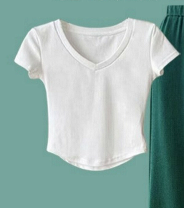 爆款女裝-顯瘦v領短袖T恤#單件(白色)(M-4XL碼) (下單後聯系客服確認尺碼)