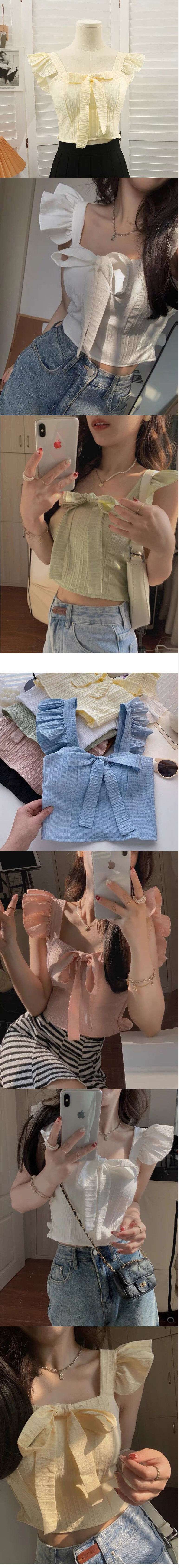 小飛袖木耳邊背心女夏短款露臍蝴蝶結吊帶