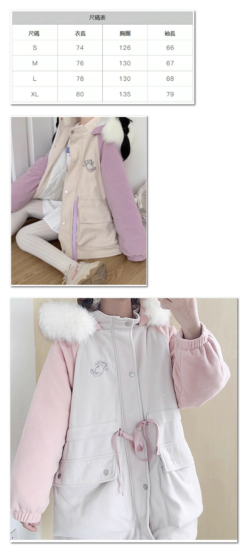 熱推女士 甜美加厚寬鬆連帽棉衣(藕粉)(尺碼:S-XL)(下單後聯絡客服確認發貨尺碼)