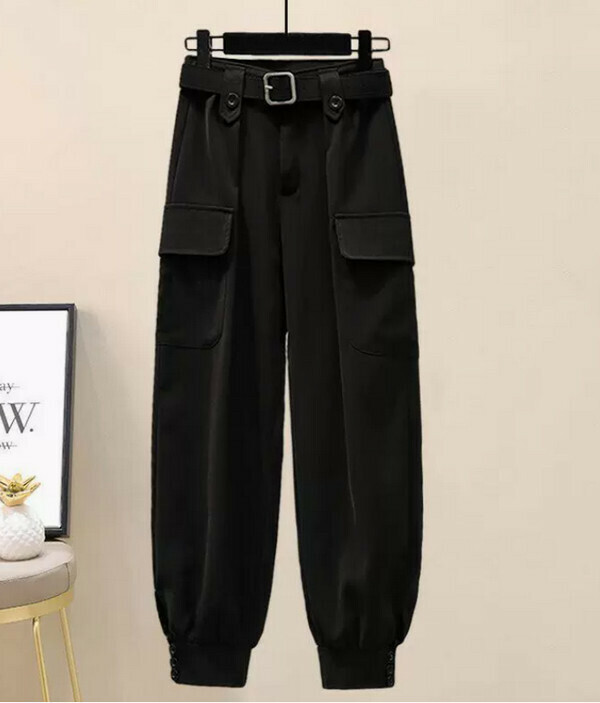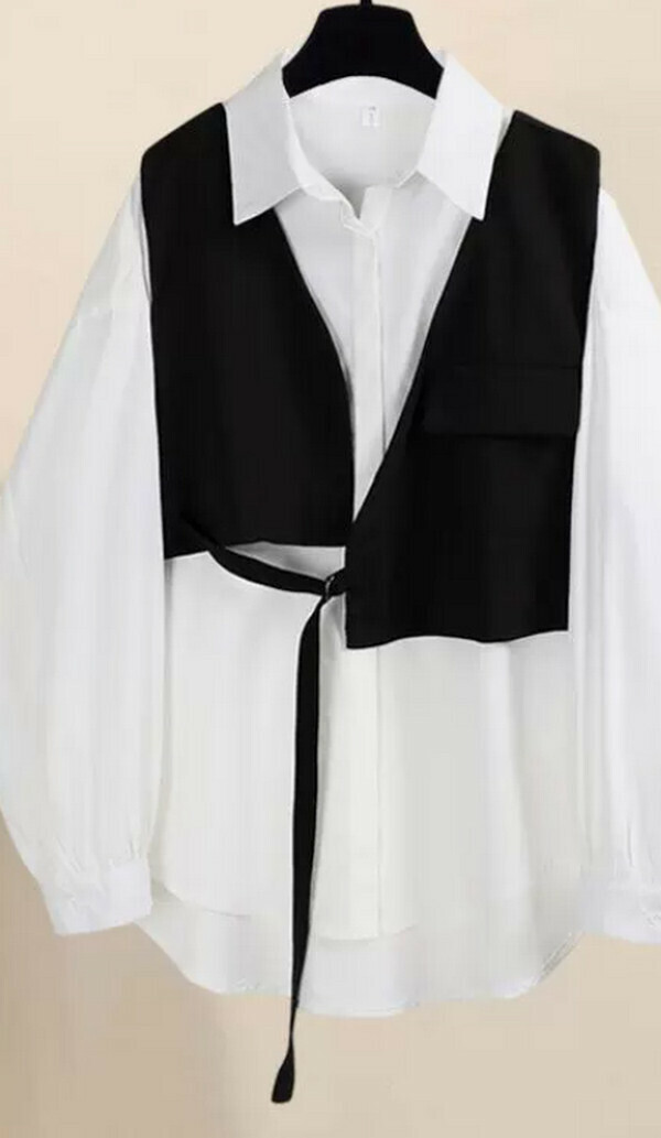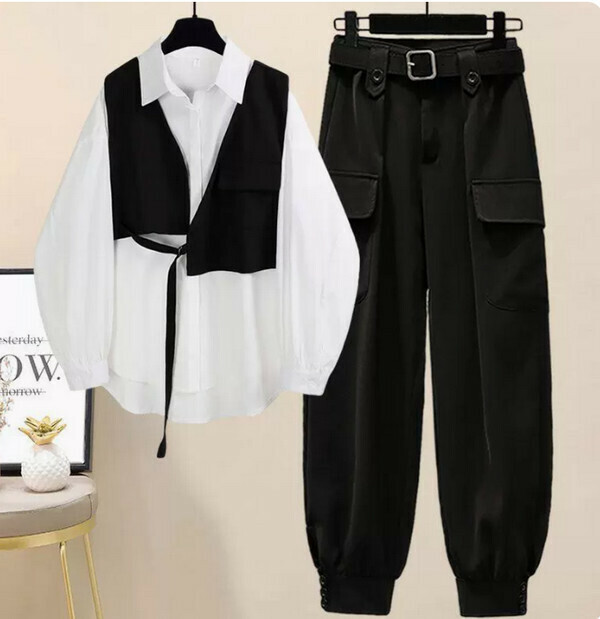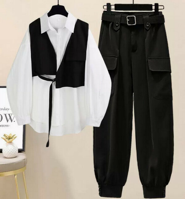 爆款女裝三件套-黑色馬甲+白色襯衫+黑色工裝褲(M-4XL碼) (下單後聯系客服確認尺碼)