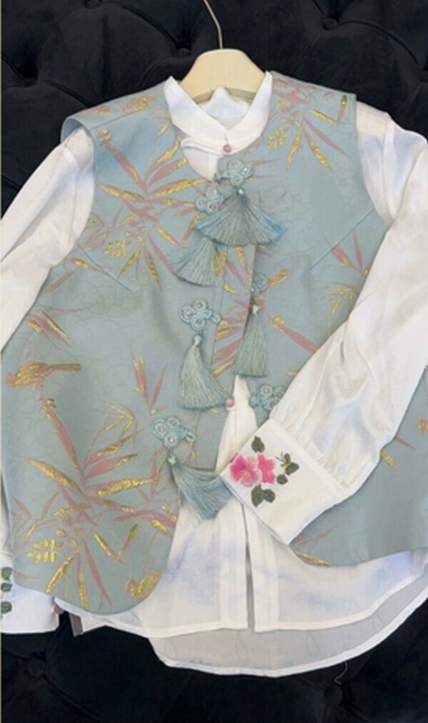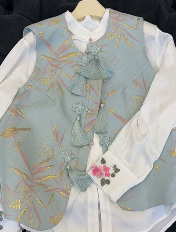爆款女裝-中式復古盤扣馬甲#單件(藍色)(M-4XL碼) (下單後聯系客服確認尺碼)