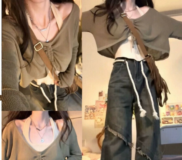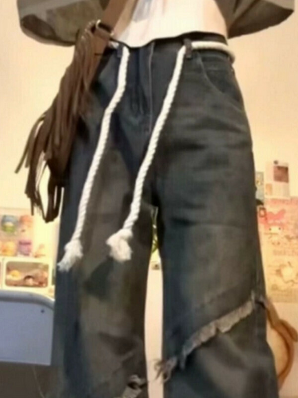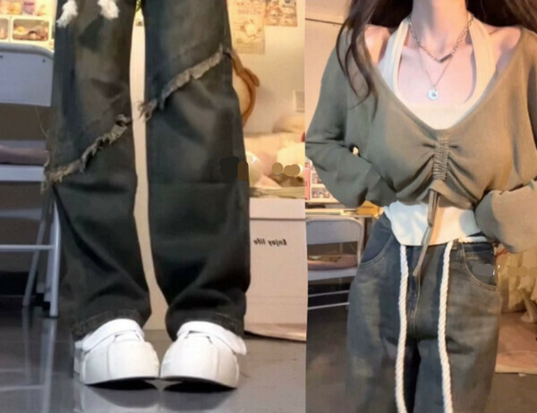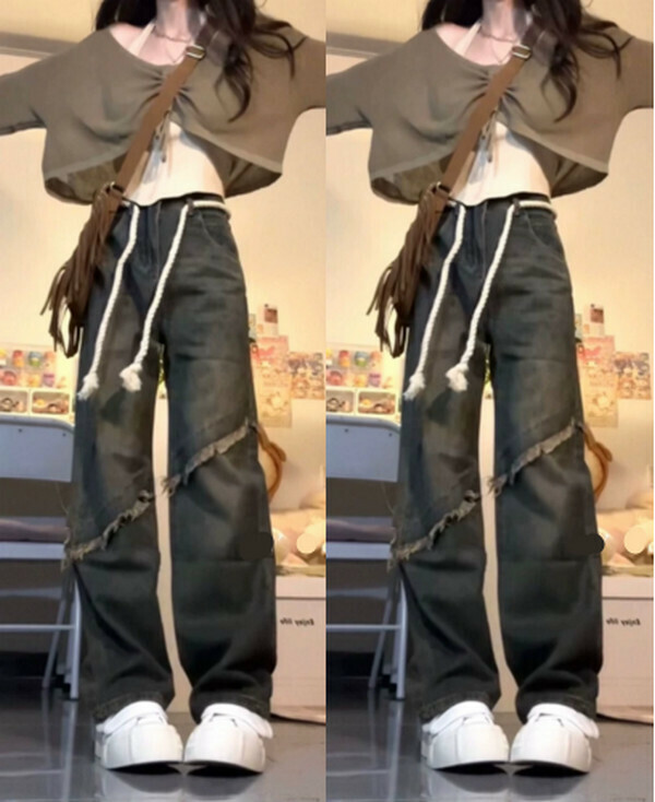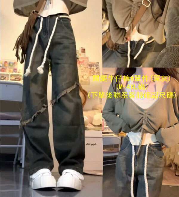 熱賣女裝-闊腿牛仔褲#單件(深灰)(M-4XL碼) (下單後聯系客服確認尺碼) #