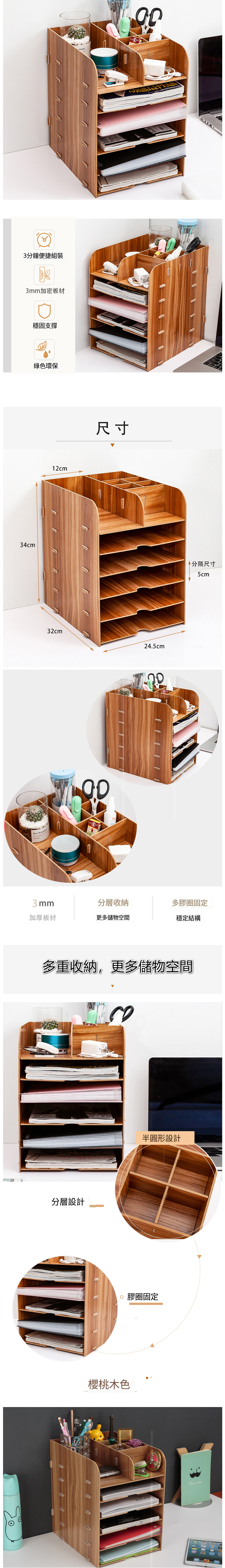 熱賣木製6層24cm 辦公桌文件架【櫻桃木色】24.5*32*34 cm