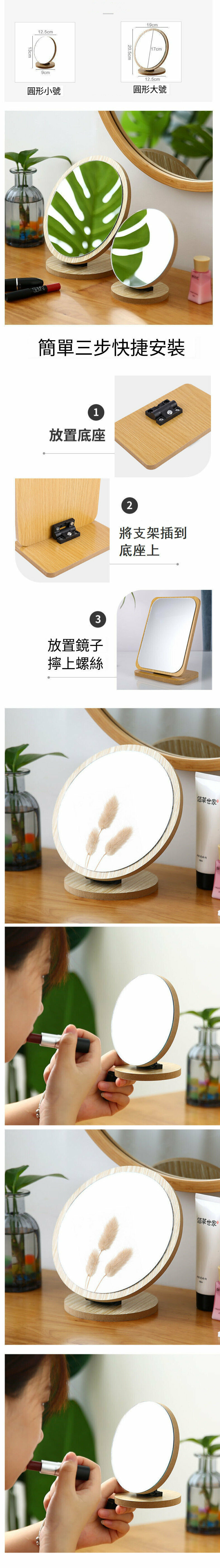 熱推木框臺式化妝鏡(圓形小號) 日係可折疊化妝鏡 宿舍鏡