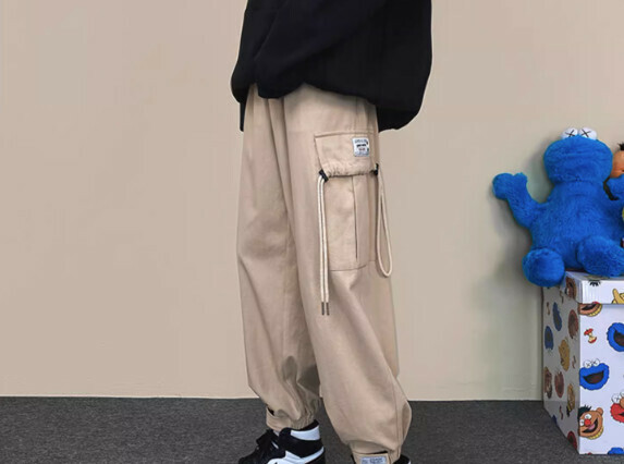 新款工裝九分褲男秋季(米百色【M_5XL碼】(下單後聯繫客服確認發貨尺碼)